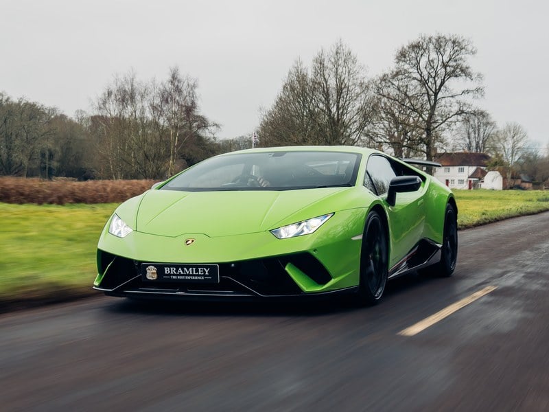 Estamos muito satisfeitos por trazer de volta este épico Lamborghini Huracan Performante para o nosso stock, na marcante cor Verde Mantis. Este fabuloso Performante é um exemplo extremamente bem equipado, combinando um exterior de grande impacto com um interior Nero Alcantara ligeiramente mais subtil (com costuras Verde, é claro). Teve apenas dois proprietários anteriores e é apresentado à venda em estado imaculado. O estrondoso V10 faz um rugido ensurdecedor a pleno regime, e o avançado sistema de tração às quatro rodas e a aerodinâmica inteligente garantem que se mantenha colado ao asfalto em todas as condições (a condução com precaução continua absolutamente aconselhada!). Vendido com histórico de manutenção completo, certificado MOT limpo e garantia de 12 meses.