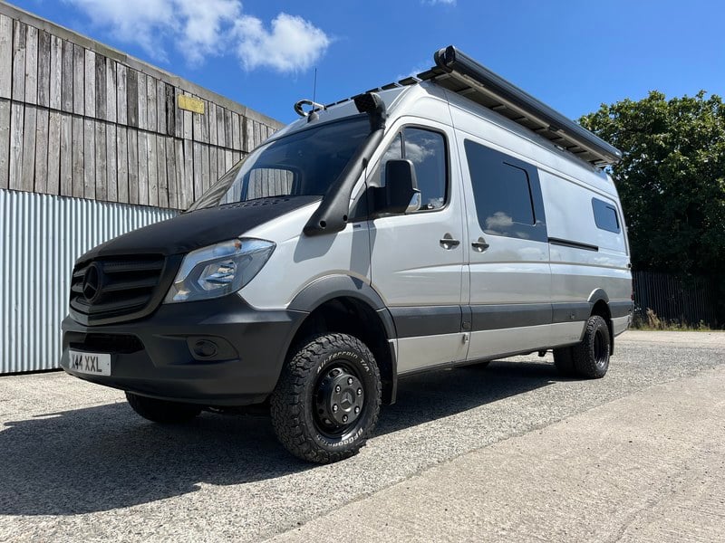 An ultra cool and super practical 4x4 Sprinter that has been kitted out for ultimate adventures far and wide. This overlander has been cherished by its previous owners and has lots of £££ spent on its conversion as well as the mechanicals making it a reliable go anywhere camper that’s ready for its next adventure. Sleeps 2 comfortably with a large king size bed with the option to easy re-configure the rear layout to your own needs i. e. 3 berth (add an under bed) or with a garage for bikes/ motorbikes as required.