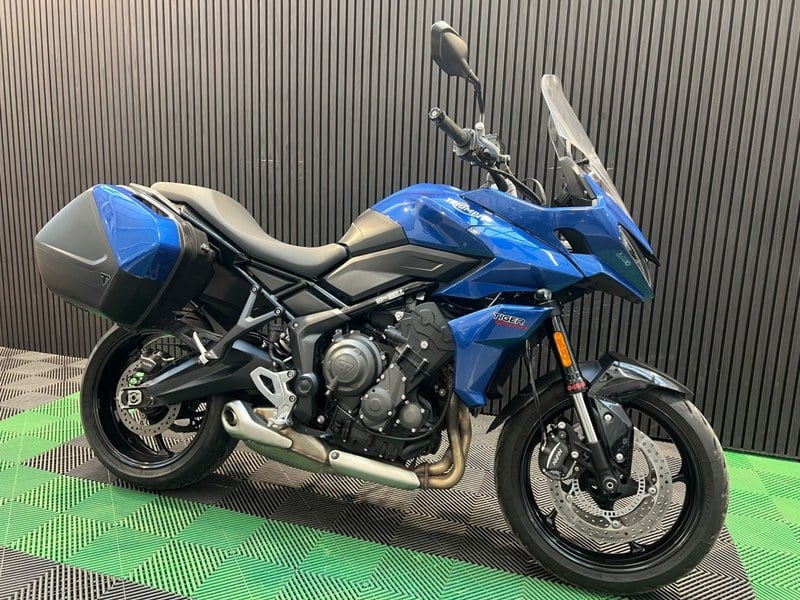 Fully loaded only just covers this lovely Tiger Sport 660. Is is fitted with full colour coded luggage, powered quadlock mount, quickshifter, engine bars with spots, tank bag, sports screen and heated grips. It is very low miles, having covered just over 3000 miles and has 2 services completed. We will be including the next service in the package for this lovely bike.