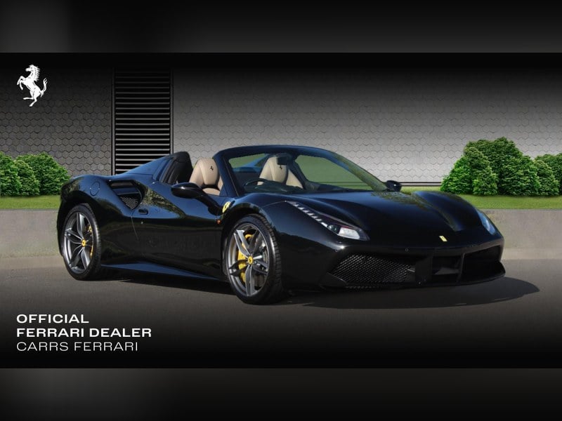 Lovely 488 Spider in Nero Daytona with Tortora leather interior. Outside the car has Giallo brake callipers and forged wheels in Grigio Corsa. This is accented by the Scuderia wing badges and wheel centres. Inside is a carbon fibre steering wheel and beautiful comfort seats, finished in Tortora.