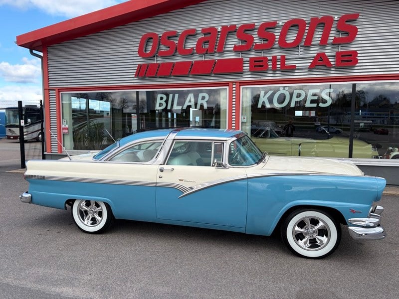 Ford Crown Victoria 1956. V8. Automatic. Power steering. Tinted windows. Dual antennas. Dual side mirrors. Original radio as well as a CD stereo with Bluetooth installed in a replica Philips record player unit. Chrome wheels with nice radial tires featuring the correct whitewall width. Older restoration.