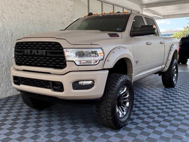 Active Grille Shutters | Door Handle Color - Body-Color | Front Bumper Color - Chrome | Grille Color - Black | Grille Color - Chrome Surround | Mirror Color - Black | Rear Bumper Color - Chrome | Window Trim - Black | Headlight Bezel Color - Chrome | Pickup Bed Light | Pickup Bed Light - Tailgate Illumination | Tailgate - Power Locking | Tailgate - Removable | Air Filtration | Armrests - Front Center | Dash Trim - Alloy | Door Sill Trim - Scuff Plate | Door Trim - Alloy | Floor Material - Carpet | Floor Mats - Front | Front Air Conditioning | Front Air Conditioning Zones - Single | Steering Wheel Trim - Urethane | Floor Mats - Rear | Floor Mat Material - Rubber/ Vinyl | Rear Vents - Second Row | Cargo Area Floor Mat - Rubber/ Vinyl | Assist Handle - Front | Assist Handle - Rear | Cruise Control | Cupholders - Front | Multi-Function Remote - Keyless Entry | Power Steering | Steering Wheel Mounted Controls - Phone | Storage - Accessory Hook | Storage - Door Pockets | Storage - Under Rear Seats | Power Outlet(S) - 12v Front | Multi-Function Remote - Panic Alarm | Overhead Console - Front | Steering Wheel - Tilt | Steering Wheel Mounted Controls - Cruise Control | Push-Button Start | Reading Lights - Front | Steering Wheel Mounted Controls - Multi-Function | One-Touch Windows - 2 | Power Windows - Lockout Button | Vanity Mirrors - Passenger Illuminating | Steering Wheel Mounted Controls - Voice Control | Rearview Mirror - Manual Day/ Night | Power Outlet(S) - Usb Front | 4wd Type - Part Time | Abs - 4-Wheel | Axle Ratio - 3. 73 | Brake Drying | Braking Assist | Electronic Brakeforce Distribution | Emergency Braking Preparation | Front Brake Diameter - 14. 2 | Front Stabilizer Bar | Front Suspension Classification - Solid Live Axle | Front Suspension Type - Multi-Link | Power Brakes | Rear Brake Diameter - 14. 1 | Rear Stabilizer Bar | Rear Suspension Classification - Solid Live Axle | Rear Suspension Type - Multi-Link | Roll Stability Control | Stability Control | Tow/ Haul Mode | Traction Control | Trailer Brake Controller | Trailer Hitch - Class V | Trailer Wiring - 4-Pin | Trailer Wiring - 7-Pin | Front Brake Width - 1. 54 | Rear Brake Width - 1. 34 | Hill Holder Control | Auxiliary Transmission Fluid Cooler | Front Shock Type - Gas | Front Spring Type - Coil | Rear Shock Type - Gas | Rear Spring Type - Coil | Suspension Control - Frequency Selective | Front Brake Type - Ventilated Disc | Rear Brake Type - Ventilated Disc | 4wd Selector - Electronic Hi-Lo | Trailer Stability Control | Pickup Bed Cargo Management - Tie-Down Anchors | Alternator - 180 Amps | Battery - Maintenance-Free | Battery Saver | Battery Rating - 730 Cca | Emissions - 50 State | Auxiliary Oil Cooler | Antenna Type - Mast | Auxiliary Audio Input - Jack | Auxiliary Audio Input - Usb | Clock | Compass | Digital Odometer | External Temperature Display | Fuel Economy Display - Mpg | Fuel Economy Display - Range | Multi-Function Display | Radio - **/ Fm | Radio - Touch Screen Display | Radio Data System | Speed Sensitive Volume Control | Trip Odometer | Warnings And Reminders - Low Fuel Level | Warnings And Reminders - Low Oil Level | Electronic Messaging Assistance - With Read Function | Auxiliary Audio Input - Bluetooth | Wireless Data Link - Bluetooth | Total Speakers - 6 | Gauge - Tachometer | Infotainment - Uconnect | Electronic Messaging Assistance - Voice Operated | Radio - Voice Operated | Warnings And Reminders - Maintenance Due | Infotainment Screen Size - 8. 4 In. | Instrument Cluster Screen Size - 3. 5 In. | Smart Device App Function - Horn/ Light Operation | Smart Device App Function - Lock Operation | Smart Device App Function - Vehicle Location | Smartphone Integration - Wireless Android Auto | Smartphone Integration - Wireless Apple Carplay | Smart Device App Compatibility - Siriusxm Guardian | Wi-Fi - Hotspot | Powertrain Hour Meter | Hands-Free Phone Call Integration - Voice Operated | Daytime Running Lights | Exterior Entry Lights - Puddle Lamps | Headlights - Auto Delay Off | Headlights - Auto On/ Off | Headlights - Halogen | Headlights - Quad Headlights | Exterior Entry Lights - Approach Lam | Low Miles | Apple Carplay | Android Auto | Bluetooth | Diesel | Keyless Entry | Chrome | Traction Control | On-Star | Daytime Running Lights | Steering Wheel Controls | CD | Power Windows | Cruise Control | ABS
