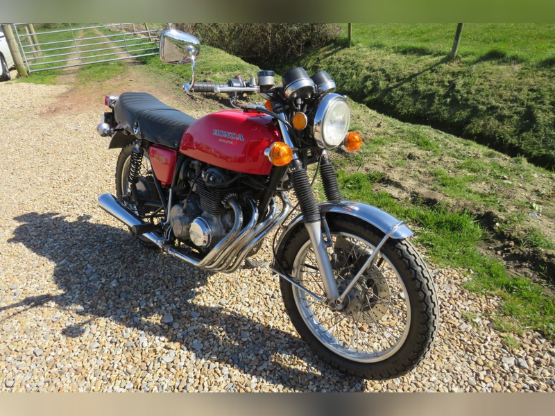 Lackierung: Rot. Die Honda CB400 Four Super Sport profitiert von einem Großbohrungsumbau auf 460 ccm und wurde erstmals im November 1975 zugelassen. Sie hatte sechs Vorbesitzer und zeigt derzeit 36. 851 Meilen. Sie läuft und startet wie sie soll, sehr gut präsentiert. Eine ikonische Maschine ihrer Zeit, die viel Freude beim Fahren bereitet.