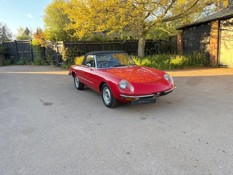 Vår bil här, färdig i de perfekta färgerna Röd över svart, är ett UK-levererat exemplar, första registrering den 8 mars 1973. Vi har tyvärr lite historik med bilen, den har varit hos sin tidigare ägare under de senaste 11 åren och startar och går utmärkt. Bilen är nu i ett trevligt skick, lacken är mycket fin och listerna runt dörrar och paneler är bra, den ser fantastisk ut men är inte så fantastisk att du är rädd att lämna den till vägs. Mekaniskt är den stark och ett riktigt solid exemplar också. Hennes senaste MOT gick ut 2022 men det fanns inga anmärkningar. Dessa var de sista Alfa Spiders med kromade kofångare och denna, som en fabrikslagd högerstyrd bil, är ett sällsynt exempel! Med priserna på Duetto- och Boat Tail-Spiders som stiger, kommer dessa bli nästa att flytta, köp medan de fortfarande är överkomliga, tror jag!