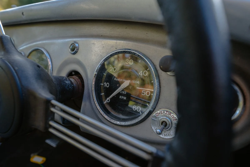 Die BN2 ist eine kluge Wahl für Fans der frühen Modelle, weil sie das Upgrade auf 4-Gang-Getriebe plus Overdrive erhielt, was zusätzlich lang übersetzte, hochgeschwindigkeitsfähige Cruising-Eigenschaften bietet. Uns wird erzählt, dass dieses BN2 aus dem Jahr 1956 in Texas begann, bevor es 1993 in das Vereinigte Königreich importiert und auf Rechtslenker umgebaut wurde. Seit seiner Ankunft hatte es nur zwei Besitzer, der aktuelle seit 2002. Er berichtet, dass es immer trocken in einer Garage zwischen den Einsätzen gestanden hat.