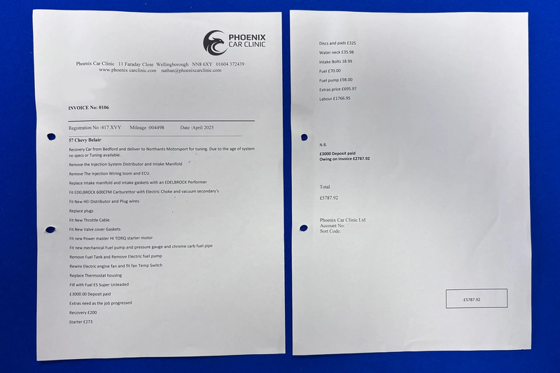 - Rechnungen im April 2025 über £5.787 für umfangreiche Arbeiten an Kraftstoffanlage, Ansaugtrakt, Vergaser sowie Bremsen