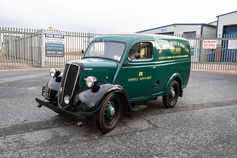 Der vorherige Halter hat diesen hübschen ’53 E83W 10CWT-Van restauriert, ein seit Langem etabliertes Heizungs- und Sanitärunternehmen, um sein Centenar im Jahr 2005 zu feiern. In elegantem dunklem Grün mit schwarzen Flügeln und Rädern lackiert, verfügt er über von Hand aufgebrachte Blattgold-Beschriftungen und ist ein wirklich eindrucksvoller kleiner Van. Er wurde sogar von einem der Techniker des Unternehmens genutzt, um Kunden zu besuchen.