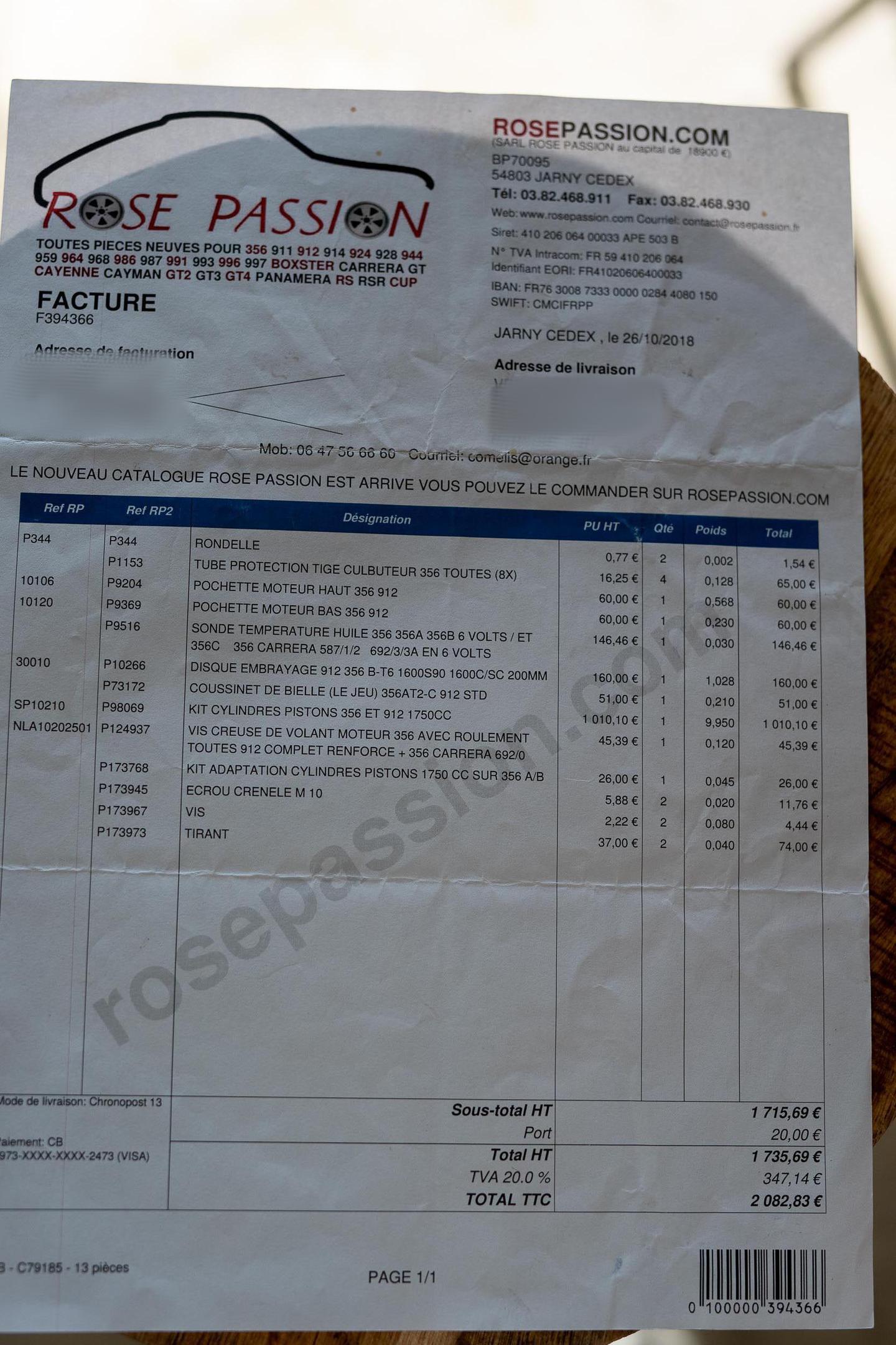 • Numerous parts invoices from Rose Passion and other Porsche specialists
