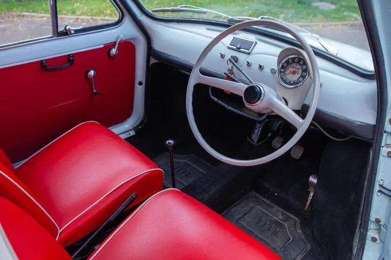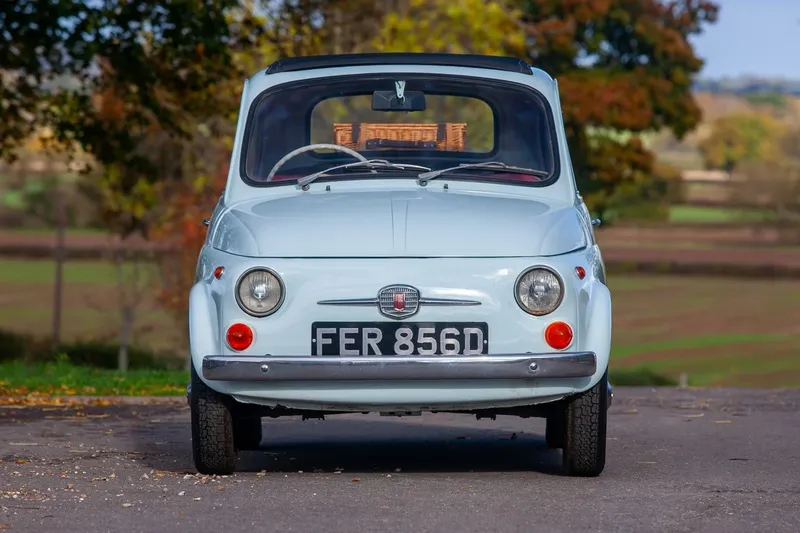 Dieses besondere Exemplar, das im September 1966 erstmals zugelassen wurde, ist ein entzückendes, zeitgemäßes und unverändertes Auto in der Werksfarbe Azzurro Acquamarina. Berichten zufolge wurde es neu lackiert und umfassend überarbeitet, wobei Rost entfernt und neue Bleche angebracht wurden. Die verchromten Stoßstangen und Zierleisten wurden poliert und nicht ersetzt oder neu verchromt, um den authentischen Charakter der 1960er Jahre zu bewahren, während das Stoffschiebedach, die Fenstergummis und die Türgummis erneuert wurden.