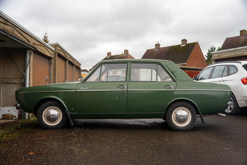 Dieser 1968 Minx ist ein Modell der De Luxe-Ausführung, das seit der Auslieferung nur drei Vorbesitzer hatte. Lackierung in dunklem Grünmetallic mit schwarzem Vinyl-Innenraum, er ist ein bemerkenswert gut erhaltenes, sehr originales, unmodifiziertes Fahrzeug. Man muss nicht nur uns glauben – es gibt eine sehr nützliche unabhängige Bewertung und Wertung in den Fotos. Diese liefert einen begeisterten Bericht und beschreibt ihn als ein Auto in „ausgezeichneter, guter und originaler Zustand, gut gepflegt.“ Uns wird auch mitgeteilt, dass er gut läuft.