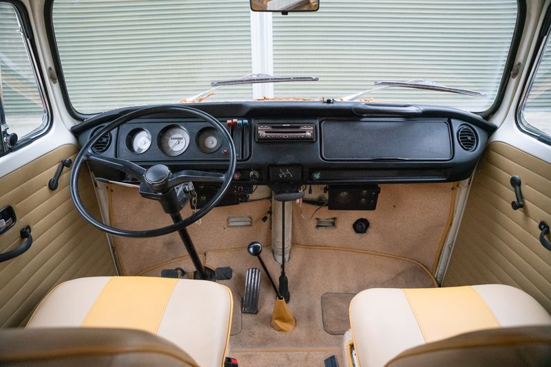 Dieses 1971er T2 Westfalia verbrachte sein Leben in Kalifornien, zweifellos surf-adjacent, bis es 2006 ins Vereinigte Königreich kam. Der aktuelle Halter erwarb es 2008. Uns wird gesagt, dass es seither in einer ITV-Sendung mit Jensen Button zu sehen war.