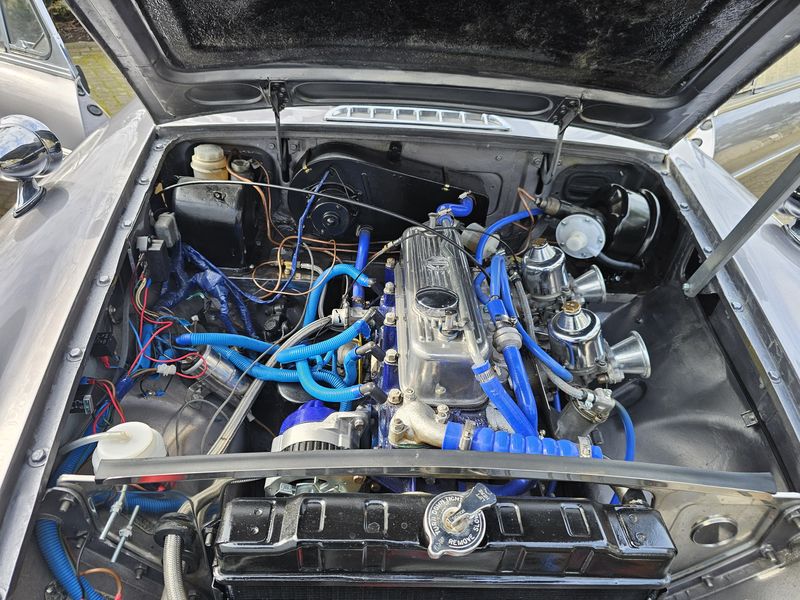 - Voll abgestimmte SU-Vergaser mit Chromabdeckungen und Trompeten-Luftfiltern