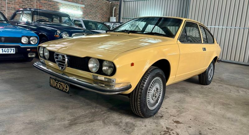 "Die Alfetta GT stammt aus der Feder des legendären Giorgetto Giugiaro und ist eine unbestreitbare Design-Ikone - keilförmig, aggressiv und unverkennbar Alfa Romeo. Die werkseitige Lackierung in Maisgelb ist makellos, die Spaltmaße sind perfekt, und die Lackierung glänzt wie am ersten Tag.