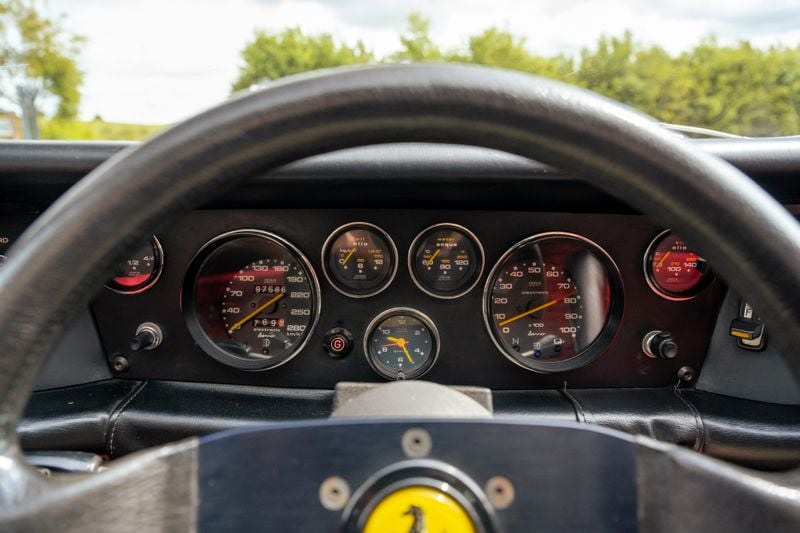 Nur 840 Stück wurden verkauft. Abgesehen von einigen kleineren Ausstattungsunterschieden unterscheiden sich diese mit geringem Hubraum von der 308GT4 nur durch ihren einzelnen Heckauspuff. Dieses 1975er Rosso Corsa-Modell gehörte zuvor dem Rennfahrer und Freund von Enzo, Fabrizio Violati. Er war Gründungsmitglied des Ferrari Club of Italy und der Maranello Collection. Das Auto behält seine italienischen schwarzen ‚Roma‘-Kennzeichen und die Registrierung.