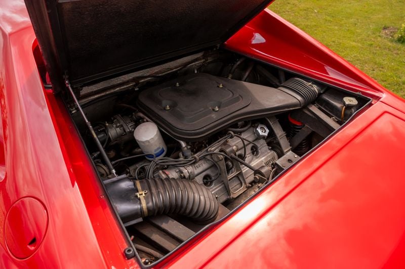 Bertones innovatives, geschliffenes 2+2-Midship-Design hat sich sehr gut gehalten, wie dieses äusserst hübsche Auto beweist. Wir lieben die Cromodora-Felgen und das wunderbare Interieur mit einer Mischung aus Nero-Vinyl und seltenem tiefrotem Velour. Seit 2021 hat das Auto Wartungs- und Instandhaltungsarbeiten im Wert von über £14.000 erhalten, darunter neue Zahnriemen. Im August 2025 erhielt es eine neue Scheibe und einen vollständigen Service. Uns wird gesagt, dass es eine bis August 2026 gültige MOT hat.
