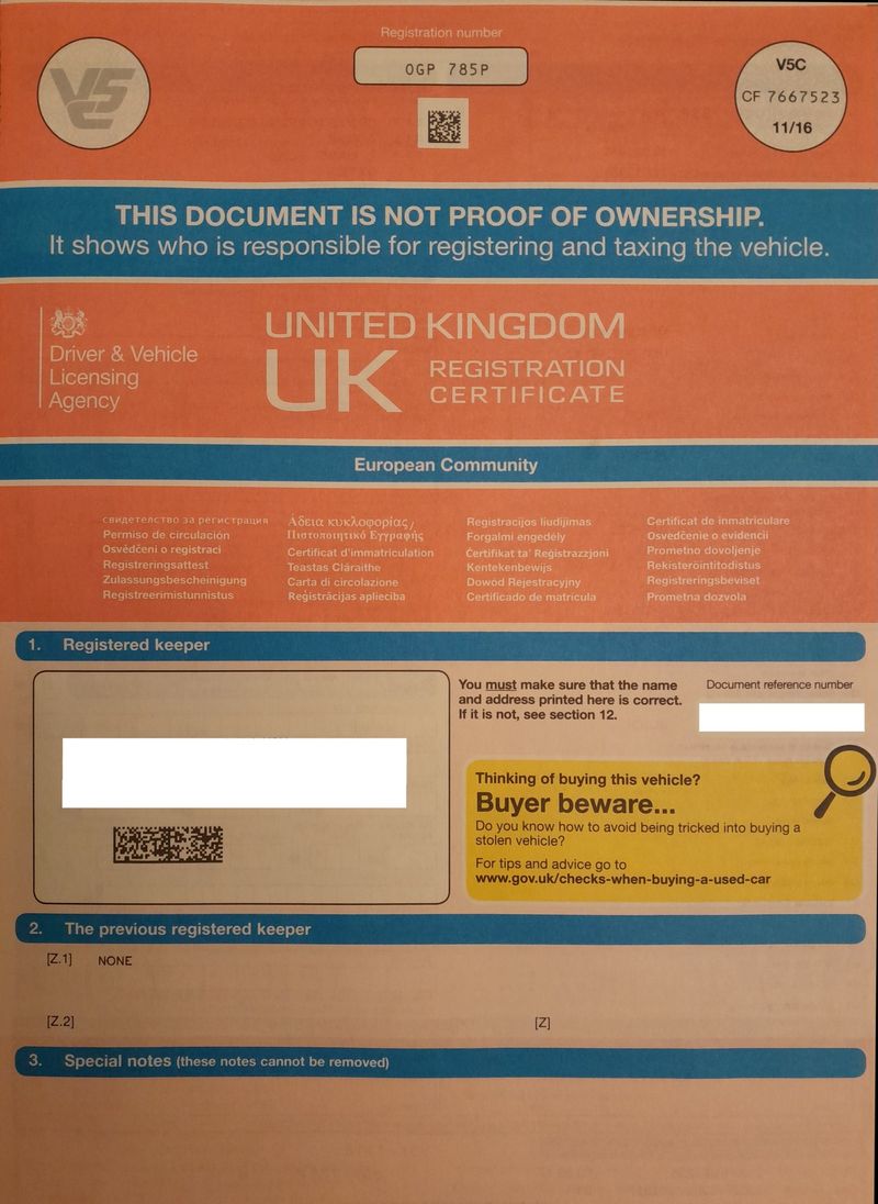 Eingetragen als historisches Fahrzeug, von der Kfz-Steuer befreit