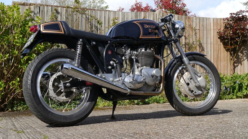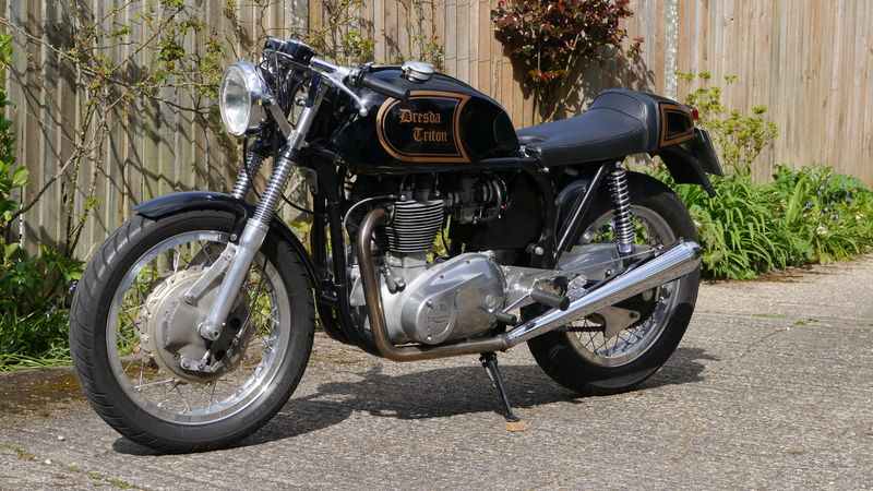 Im Jahr 1980 wurde der Motor der Maschine durch einen T120 in Einheitsbauweise ersetzt, mit einem Rickman 8-Ventil-Umbau, um dem ohnehin schon brillanten Handling des Featherbed-Rahmens noch mehr Leistung zu verleihen. Das Motorrad wurde später im Jahr 2015 von Dresda komplett neu aufgebaut, wobei eine Vielzahl von Dresda-Modifikationen und Spezialteilen, die der Besitzer erworben hatte, eingebaut wurden.
