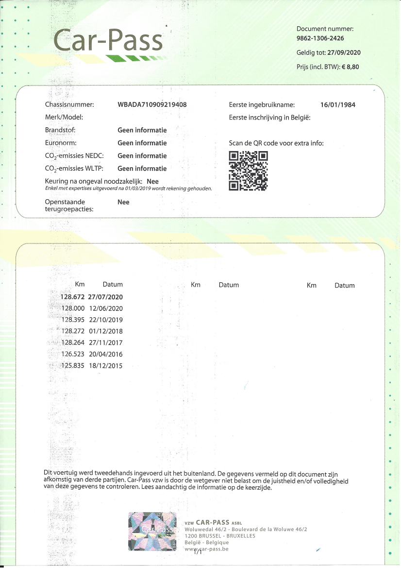 • Belgian registration certificate