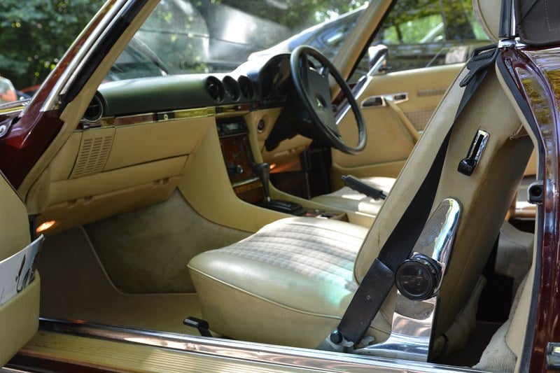 It is a late ‘pre facelift’ car with the well regarded 3.8litre M116 V8 engine that delivers an effortless but suitable soundtracked experience. The presentation has been helped by an extensive restoration a few years ago, including replacing the all-important bulkhead. The beige cloth cabin was retrimmed at the same time. The bulging history file attests to further care over the years.