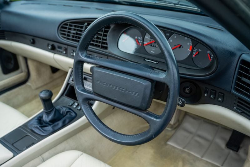 Dieses 1990er Exemplar hat von Neu drei registrierte Halter und wurde sein ganzes Leben lang von Porsche Centre Bristol betreut – eine Behauptung, die durch eine umfangreiche Belegsammlung unterstützt wird. Es soll vollständig original sein, ohne Karosserie-Reparaturen, und profitiert von der seltenen serienmäßigen Klimaanlage.