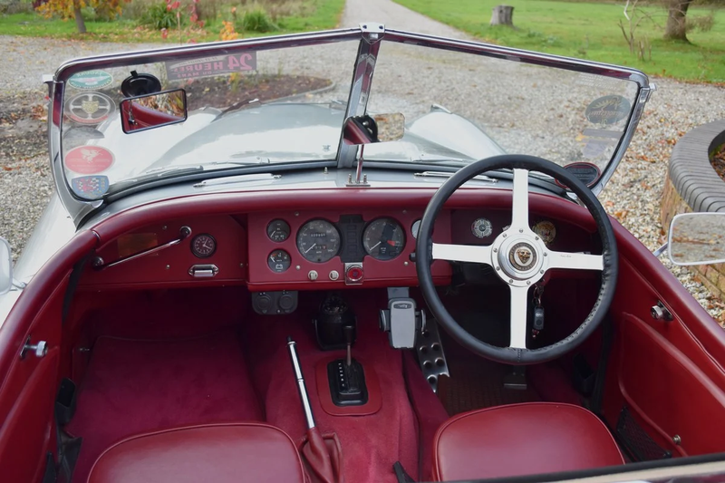 Die Fotos dieses Fahrzeugs zeigen, wie sorgfältig man an Linienführung und Stand gearbeitet hat. Für Laien ist der Unterschied zu einer Originalkopie kaum zu erkennen. Das Auto wurde 1999 aufwändig für einen wohlhabenden Bauern als Geschenk an seine Frau gebaut. In dunkler Silber-Metallic-Lackierung mit burgunderrotem Leder wirkt es ausgesprochen reizvoll und befindet sich in hervorragendem Zustand.