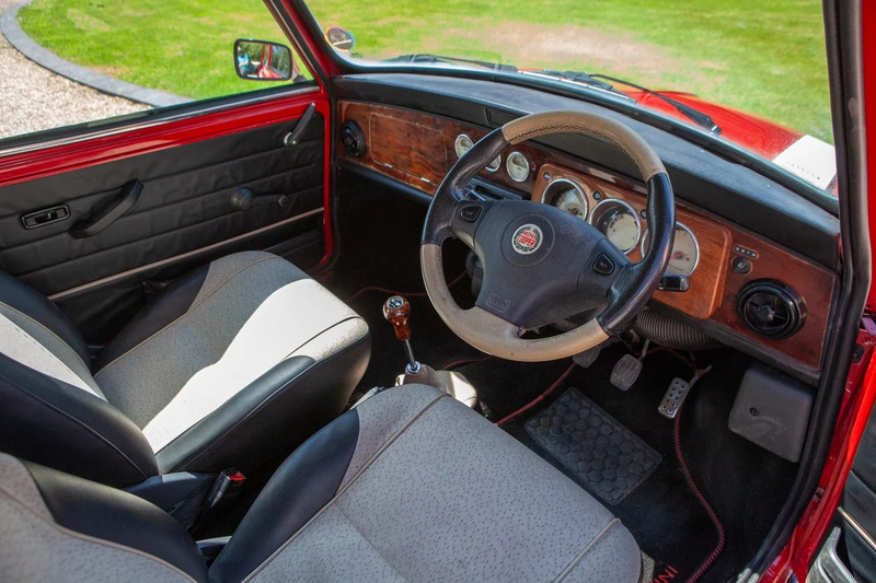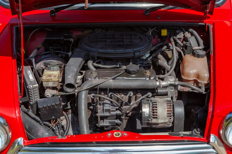 Der Mini Cooper der letzten Generation feierte vierzig Jahre Mini-Produktion. Mit seinem 1.275cc-Motor und vierstufigem Schaltgetriebe gilt der Cooper als der begehrteste Vertreter der klassischen Mini-Reihe, und dieses Exemplar präsentiert die markante Rot-auf-weiss-Dach-Kombination, die dem Auto so gut steht.