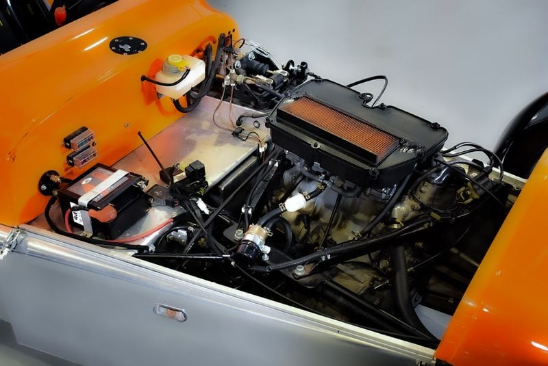 Der Dax Rush gilt als der Gipfel leichter, leistungsstarker Roadster, inspiriert vom ikonischen Lotus Seven-Design. Dieses Exemplar von 2004 hebt sich von nahezu allen anderen ab, da es nie registriert oder im öffentlichen Straßenverkehr genutzt wurde und seit seiner Montage lediglich 85 Testkilometer zurückgelegt hat. Was diesen Rush wirklich besonders macht, ist die Kombination aus dem Suzuki Hayabusa 1300cc-Motorkraft und einem unglaublich leichten 735 kg-Chassis, das ein Power-to-Weight-Verhältnis erzeugt, das nur wenige Serienfahrzeuge erreichen können.