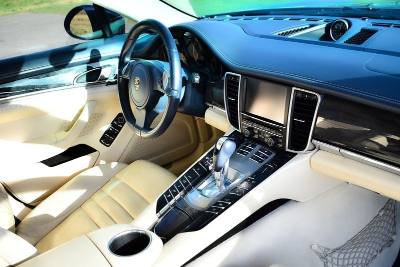 Dieser Panamera 4S aus dem Jahr 2010 ist ein besonders gut ausgestattetes Exemplar, das ab Werk beeindruckende 36.450 € an zusätzlichen Optionen erhielt — was den ursprünglichen Preis in den Niederlanden auf über 175.000 € treibt. Die Spezifikation liest sich wie eine Hitliste der Porsche-Optionen: Porsche Ceramic Composite Brakes mit gelben Bremszangen, das Sport Chrono-Paket, BOSE Surround Sound, belüftete und beheizte 14‑Wege-Komfortsitze in Luxor-Beige-Leder, ein lederbezahltes Armaturenbrett, dunkle Holzdekorakzente im Innenraum, Vier-Zonen-Klimaautomatik und Bi-Xenon-Scheinwerfer mit Porsche Dynamic Light System. Es rollt auf 21-Zoll‑Rädern in schwarzer Ausführung und profitiert von adaptiver Luftfederung.