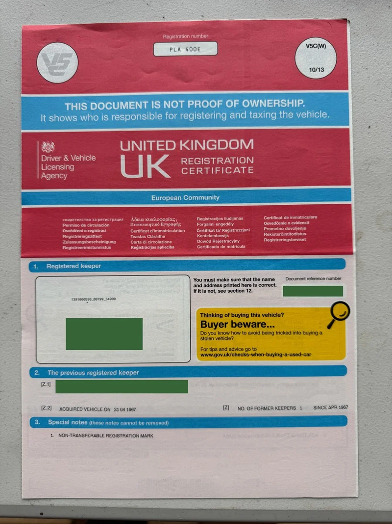 Uns wurde gesagt, dass dieses Auto so fährt, wie es sollte, und der Motor sieht auf jeden Fall in gutem Zustand aus. Dieser schöne Sportwagen, der zuvor komplett überholt wurde, scheint bereit zu sein und auf seinen neuen Besitzer zu warten. image.png3.28 MB BEVOR SIE KAUFEN Dieser Verkauf unterliegt den Allgemeinen Geschäftsbedingungen von Car & Classic. Indem Sie ein Gebot abgeben und/oder ein Angebot machen, erklären Sie sich mit den folgenden Bedingungen einverstanden: ✓ Der Verkäufer ist als Privatverkäufer registriert, was bedeutet, dass die Verbraucherrechte aus dem EU-Verbraucherschutzrecht nicht in Kraft treten. Für Sie gelten jedoch weiterhin die Allgemeinen Geschäftsbedingungen von Car & Classic. ✓ Wir verlangen eine nicht rückzahlbare Gebühr, wenn Sie der glückliche Gewinner der Auktion sind oder wenn Ihr Angebot akzeptiert wird. Bitte lesen Sie unsere hilfreichen FAQs und AGBs für spezifische Preise. ✓ Dieses Fahrzeug wird "Wie gesehen", auf einer "Wie-ist-wo-ist"-Basis und ohne Garantie verkauft. Fotos und Beschreibungen dienen nur zur Orientierung und es ist üblich, eine vollständige Inspektion des Fahrzeugs vor dem Kauf für Ihren eigenen Seelenfrieden durchzuführen. ✓ Die Mehrwertsteuer ist in der Gebühr für den Käufer enthalten. Die Mehrwertsteuer kann im endgültigen Gebots- oder Angebotspreis enthalten sein oder nicht, wie in der Anzeige angegeben. ✓ Wir wollen eine reibungslose Transaktion genauso wie Sie und deshalb lassen wir alle in Großbritannien zugelassenen Autos und Motorräder, die auf Car & Classic zum Verkauf stehen, durch einen Online-HPI-Check laufen, um sicherzustellen, dass sie keine Versicherungsdatenbankmarker für Schäden oder Diebstahl aufweisen und keine Finanzierungsschulden haben, so dass Sie mit Vertrauen bieten können. Wir überprüfen auch, ob die Fahrzeuge zum Zeitpunkt der Einstellung eines Inserats auf Car & Classic als Teil eines Totalschadens in der Versicherungsdatenbank erfasst sind. Wir stellen Ihnen die Kennzeichnung der Abschreibungskategorie (Kat. C/D/S/N) zu Ihrer Unterstützung zur Verfügung. Das Vorhandensein oder Nichtvorhandensein einer Kennzeichnung ist jedoch keine Garantie für den Status des Fahrzeugs, und es lohnt sich immer, eine eigene vollständige Überprüfung der Fahrzeughistorie durchzuführen, bevor Sie ein Angebot für ein Fahrzeug abgeben. ✓ Der Käufer ist für die Abholung des Fahrzeugs oder Lieferung. Bei der Einfuhr von Fahrzeugen können zusätzliche Zölle und Einfuhrsteuern anfallen, daher lohnt es sich, dies vorher zu prüfen.