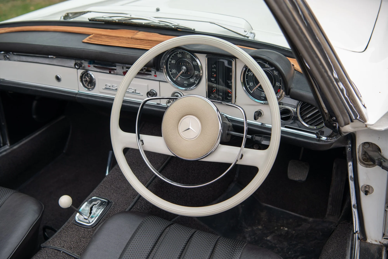 Er ist auch bemerkenswert laufruhig und ausdauernd, ein Auto, das mit wenig Aufwand fröhlich Kilometer macht, und unter allen verfügbaren Optionen ist der 250SL wohl der beste von ihnen. Er hat ein wenig mehr "Schwung" als seine relativ untermotorisierten 230SL-Brüder und behält die klassischen Linien bei, bevor der 280SL Änderungen erforderlich machte. Im Grunde genommen spricht alles für ihn, und es ist dieser Wagen, zu dem die eingeweihten Enthusiasten am liebsten greifen.
