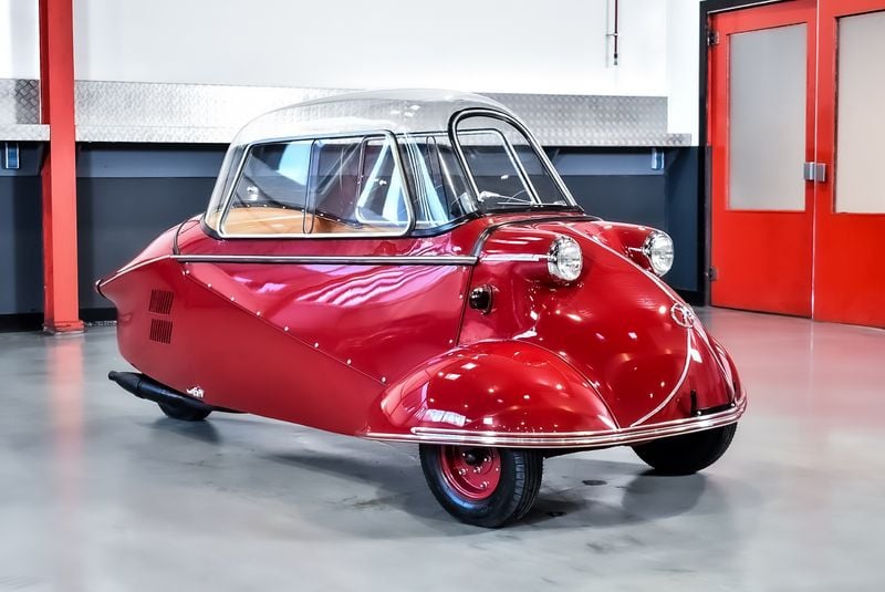 The Messerschmitt KR175 represents a fascinating chapter in post-war automotive history, when aircraft manufacturer Messerschmitt was temporarily prohibited from producing aircraft and turned to microcar production. This 1954 example is one of the rare early KR175 models, produced for just two years before being replaced by the more common KR200. The iconic 'Bubbletop' design with its aircraft-inspired canopy and tandem seating arrangement makes this microcar instantly recognisable and highly collectable.