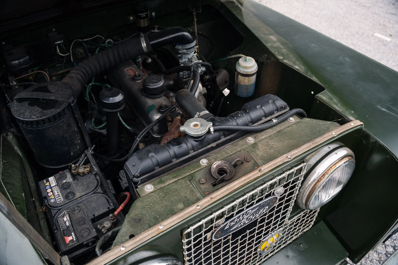 Este modelo Series II, sorprendentemente bien conservado, fue construido en enero de 1960 con la clásica batalla de 88 pulgadas, terminado en Bronze Green y provisto con techo de lona. Sorprendentemente, su próximo dueño podrá disfrutar de la misma experiencia de conducción que tuvo su primer titular registrado, con el motor de gasolina de 2,25 litros y la caja de cambios originales todavía en muy buen estado. Se han incorporado mejoras menores solo donde aumentan la usabilidad, como un nuevo motor de arranque electrónico y un escape moderno.