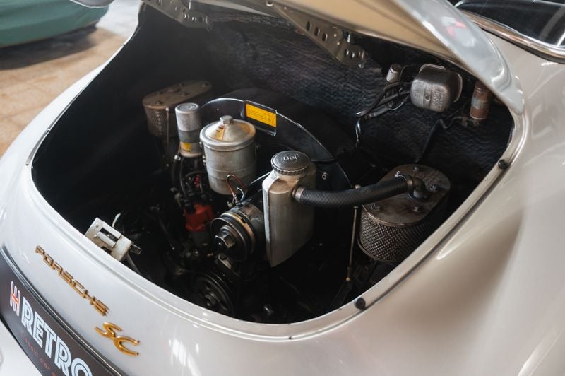 Aparte del Carrera, la SC era la más potente y mejor equipada de los numerosos modelos 356. Estos coches recibían una versión más potente de 95bhp del motor de 1.6L refrigerado por aire, además de la capacidad de frenado necesaria en forma de frenos de disco en las cuatro ruedas. Nos dicen que este coche conserva esas modificaciones de fábrica.