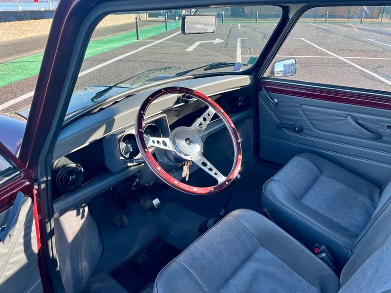 Este bonito Mini 1990 1000 Special recibió una restauración extensa de la carrocería y repintado hace tres años y se presenta en un elegante burdeos con techo negro. En el interior hay un interior muy original y bien conservado en tela gris. La condición interior es un testimonio de las bajas millas del coche.