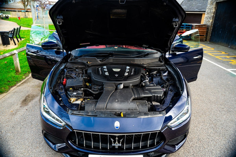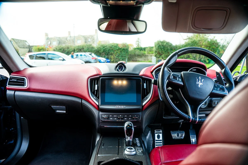Este elegante Ghibli de 2018 monta el motor V6 turbo-diesel de 3 litros y 275 CV, desarrollado para Maserati por un especialista de Ferrari. Es una elección sensata, eficiente y potente, que se suma al ya alto atractivo estético de este coche azul oscuro sobre burdeos. Las especificaciones son impresionantes, incluyendo un techo solar de vidrio poco común, acabados en carbono y un juego de llantas de 21 pulgadas.