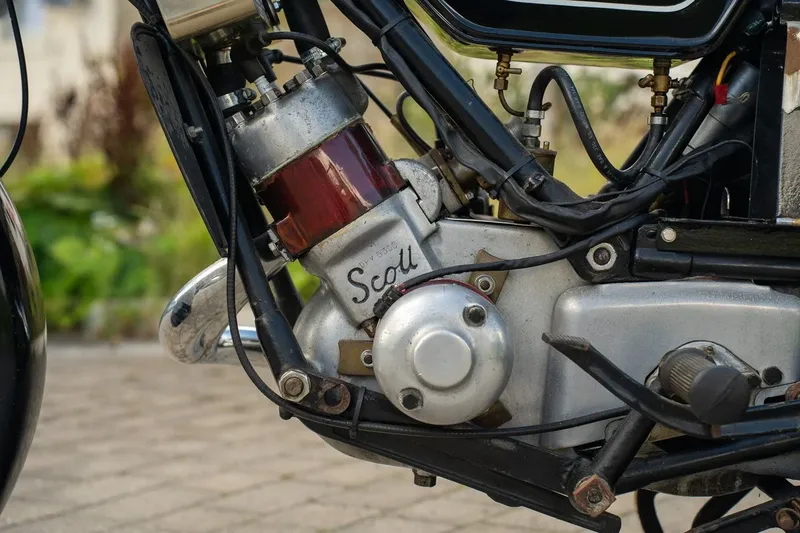 La Scott Flying Squirrel de 1950 se sitúa entre las últimas motocicletas fabricadas por Scott Motors en Shipley, marcando el final de una era para una marca celebrada por sus motores de dos tiempos refrigerados por agua y su ingenio tecnológico. Conocida por su sonido distintivo y la ingeniería avanzada de la época, la Flying Squirrel sigue siendo una opción atractiva para coleccionistas que buscan una motocicleta británica de posguerra técnicamente singular y con carácter.