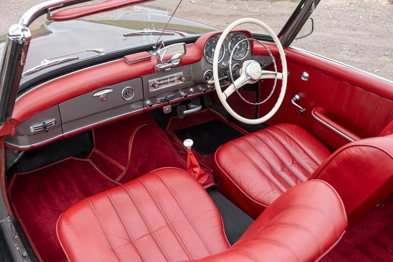 La mecánica de la 190SL resultará muy familiar para cualquiera acostumbrado a la marca. Esta pequeña unidad versátil se utilizó desde el Ponton hasta el Unimog, y se convirtió en sinónimo de la reputación de la empresa por una ingeniería robusta. Este ejemplar en particular ha sido muy bien conservado, con una reciente conversión a carburadores Weber y una buena inversión en años recientes para mantenerlo al máximo.