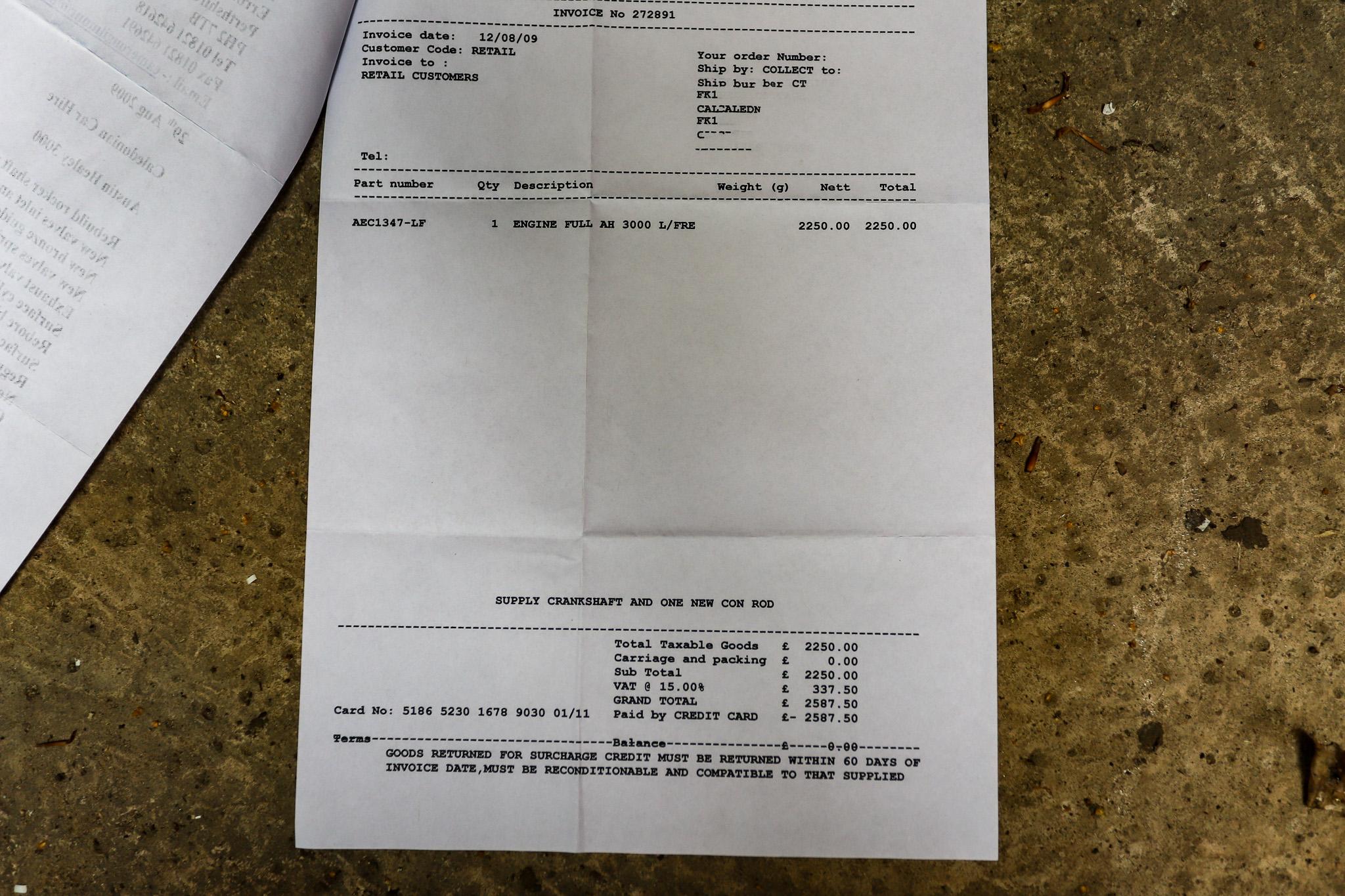 - Paperwork to back up the full engine rebuild in 2009