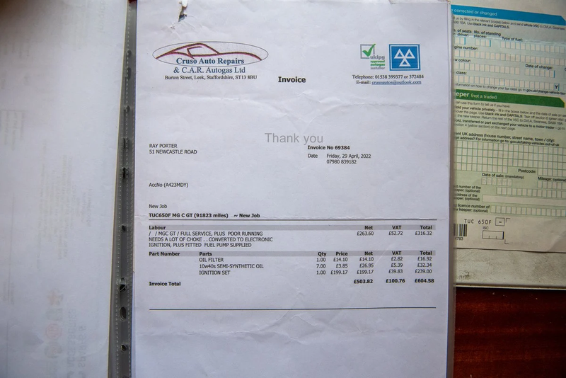 - El archivo histórico incluye manual de taller MG, manual de repuestos MGC, manual del conductor y manual de carburadores SU y un pequeño número de piezas nuevas de MGC