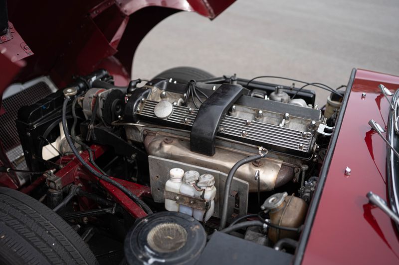 Este Jaguar E-Type de 1970, Series 2 Fixed Head Coupé, se benefició de una meticulosa restauración del motor fuera de coche realizada en Stuttgart, Alemania, durante 2015-2016, asegurando que se presente en una excelente condición. El exterior burdeos, combinado con un interior en cuero gris claro, crea una estética sofisticada que complementa las líneas elegantes del E-Type.
