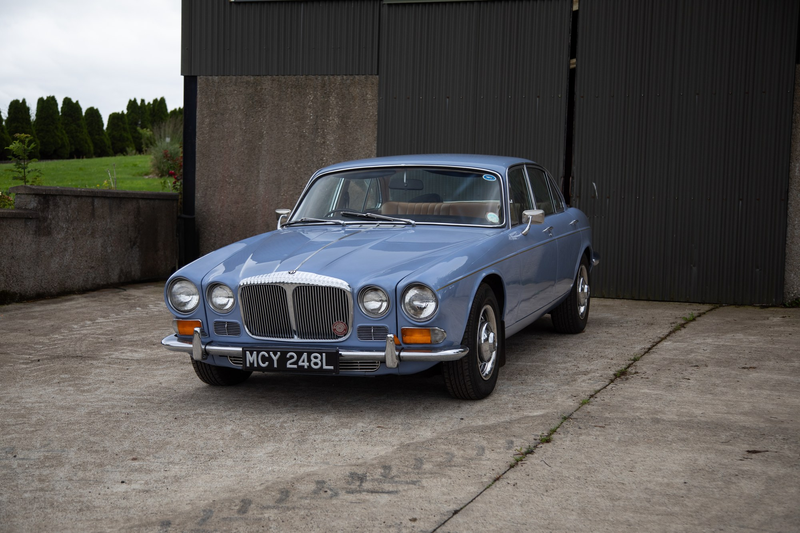 Presentado en 1969, el Daimler Sovereign era un primo cercano del Jaguar XJ6, con una interiorificación mejorada y los característicos apliques exteriores estriados de Daimler. Este ejemplar de 1973 es una Serie I tardía con motor XK de 4.2 litros y caja automática. Resplandeciente en el tono tan propio de la época, 'Lavender Blue', este Daimler ha sido restaurado a las especificaciones de fábrica y se presenta impecable como resultado.