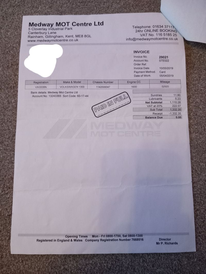 • New front suspension drop links fitted in 2019