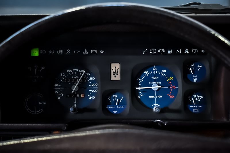 El interior lujoso del Biturbo refleja la verdadera artesanía italiana, con madera de tiraje genuina y el mejor cuero cosido a mano. Echa un vistazo a las fotos para apreciar el nivel de acabados: incluso los asientos irradian elegancia y comodidad.