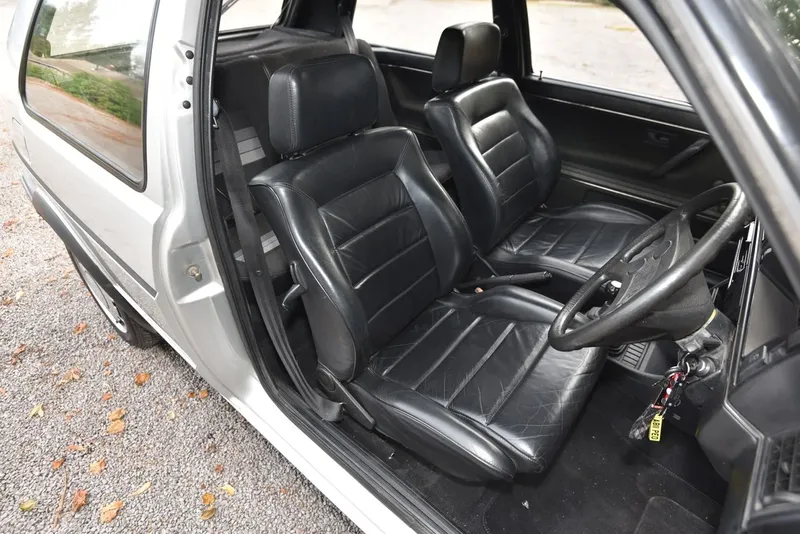This particular 1984 example captures that appeal well. Finished in Silver metallic, it sports the desirable “small bumper” GTi look, with straight plastic trims and 14-inch Pirelli “P Slot” alloy wheels. The bodywork is smart overall, with light age-related marks, slight damage from storage, and typical surface rust. Inside, originality meets subtle upgrades: everything is said to work, the headliner appears tight, and the OEM golf ball gear knob is present. The original JN Black/Silver fabric rear seats and matching door cards remain, complemented by retrofitted full-leather front seats.