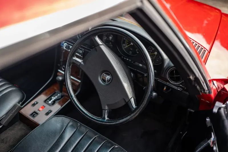Este ejemplar en concreto, terminado en Signal Red con interior en cuero negro, luce muy bien. El vendedor lo describe como “en excelente estado”, con la pintura que presenta pocos arañazos o marcas y las rejillas delanteras intactas. Los molduras cromadas podrían beneficiarse de un pequeño repaso, pero en general el coche transmite una gran impresión. Monta sus llantas de aleación Gullideckel de 15 pulgadas originales con cuatro neumáticos Avon.