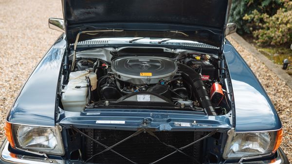 After 14 years in production the R107 received a light facelift and a shift to galvanised bodies. For those reasons these later cars are particularly popular with enthusiasts. This Nautical Blue car shows why. The paintwork complements the handsome lines and is in good order, helped by that very low mileage and a recent machine polish and paint correction process.