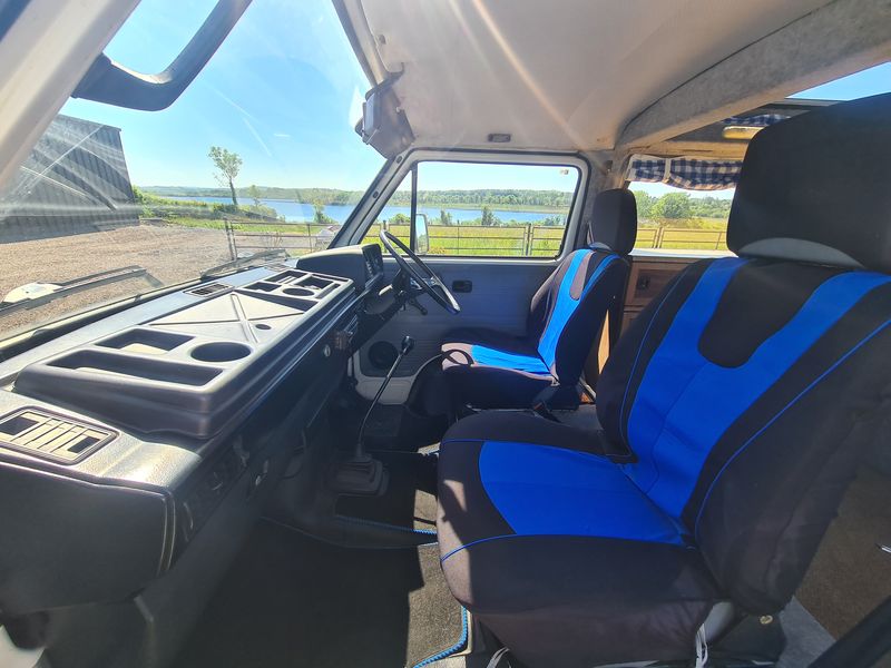 This 78PS (78bhp) 2.0l Petrol 1989 T3 is arguably the one you want for long trips. It is smartly presented and well specified, featuring a high top roof - so you can stand while you’re using it - and an array of beds and fittings to make it virtually self sufficient for any family trip.