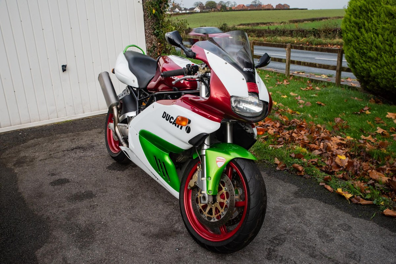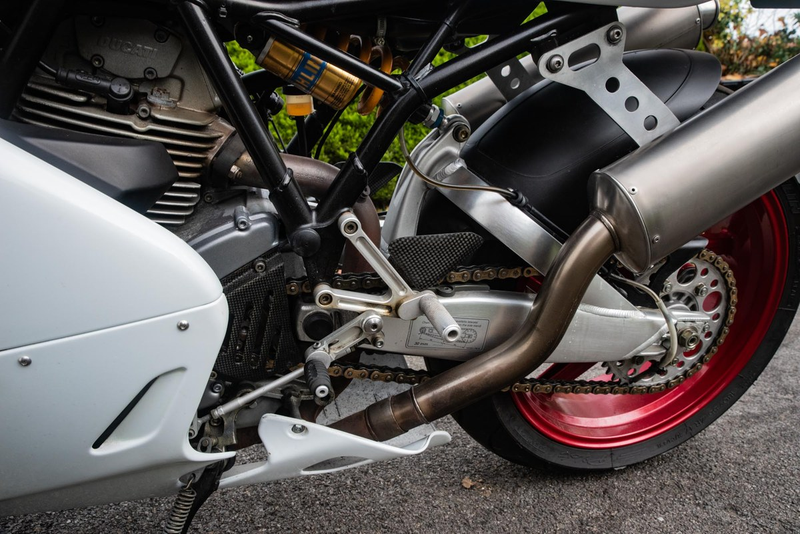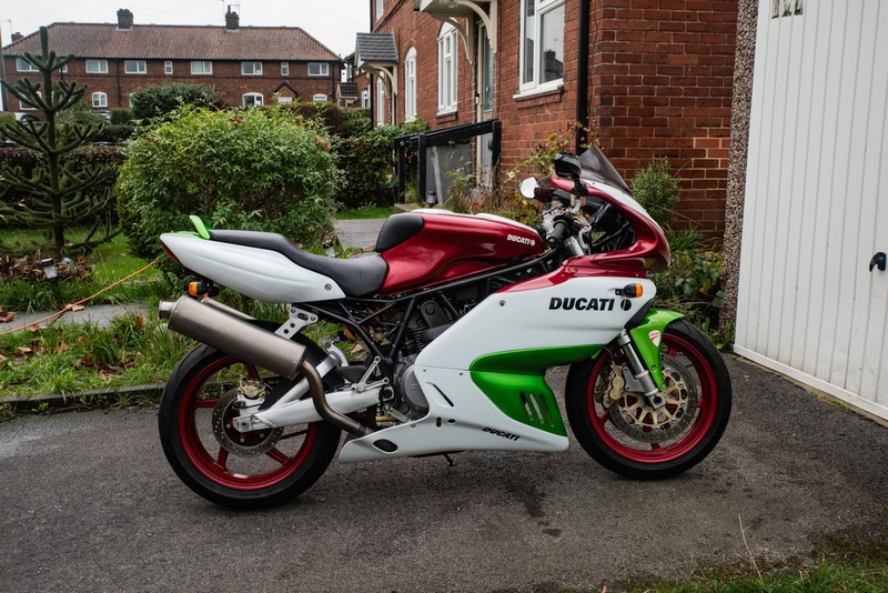 Este ejemplar de 2004 destaca por su acabado de pintura tri-color Panigale y modificaciones de rendimiento bien pensadas. Habiendo sido almacenada en un garaje seco y arrancada regularmente para mantenimiento, esta 800SS también ha sido ligeramente actualizada con puños calefactados y palancas abatibles, llevadas aún más lejos con un Power Commander Dyna Jet y escapes mejorados.