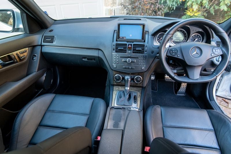 Este C63 estate temprano pasó su vida en el cuidado abrazo de Japón, donde las carreteras nunca están saladas y los estándares de mantenimiento son altos, hasta 2022 cuando llegó al Reino Unido. Marca menos de 23.000 millas en el odómetro. Aunque no podemos verificarlo, la condición parece acorde con un coche de bajo kilometraje. Acabado en Iridium Silver con interior de cuero negro, es un coche de alta especificación que parece de serie de fábrica.