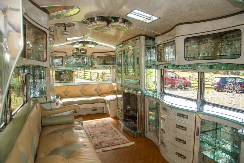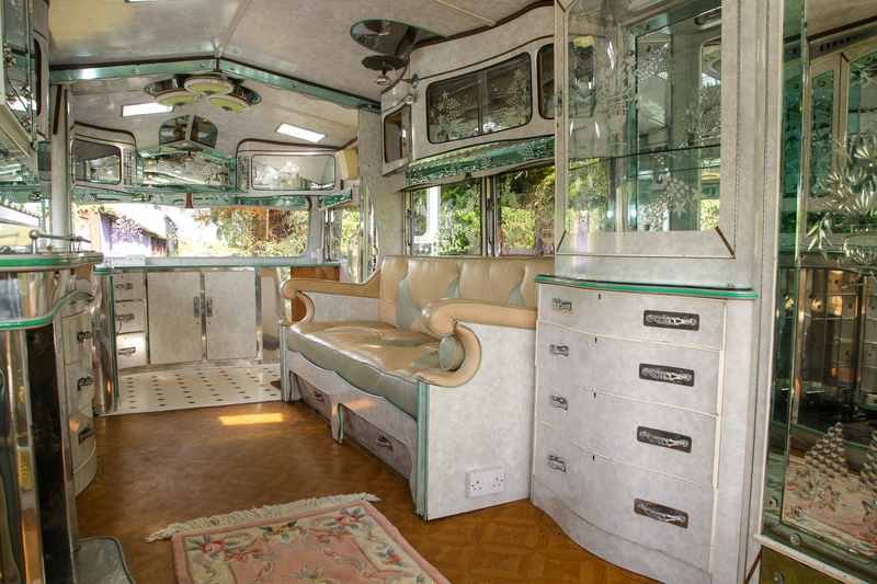 Módulos curvados y decorados y una chimenea comparten espacio con cocinas totalmente equipadas y suelos de azulejos, a menudo con motivos de vidrio esmerilado y grabado en todo. Era un lugar muy glamoroso para estar, y resultaba notablemente cómodo para artistas itinerantes que a menudo lo convertían en su hogar principal con orgullo. Hasta el día de hoy es un hogar sobre ruedas muy bien equipado.